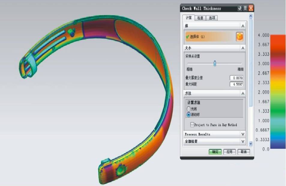 3. 通过厚度分析,可以得了产品基本壁厚为2.3mm。